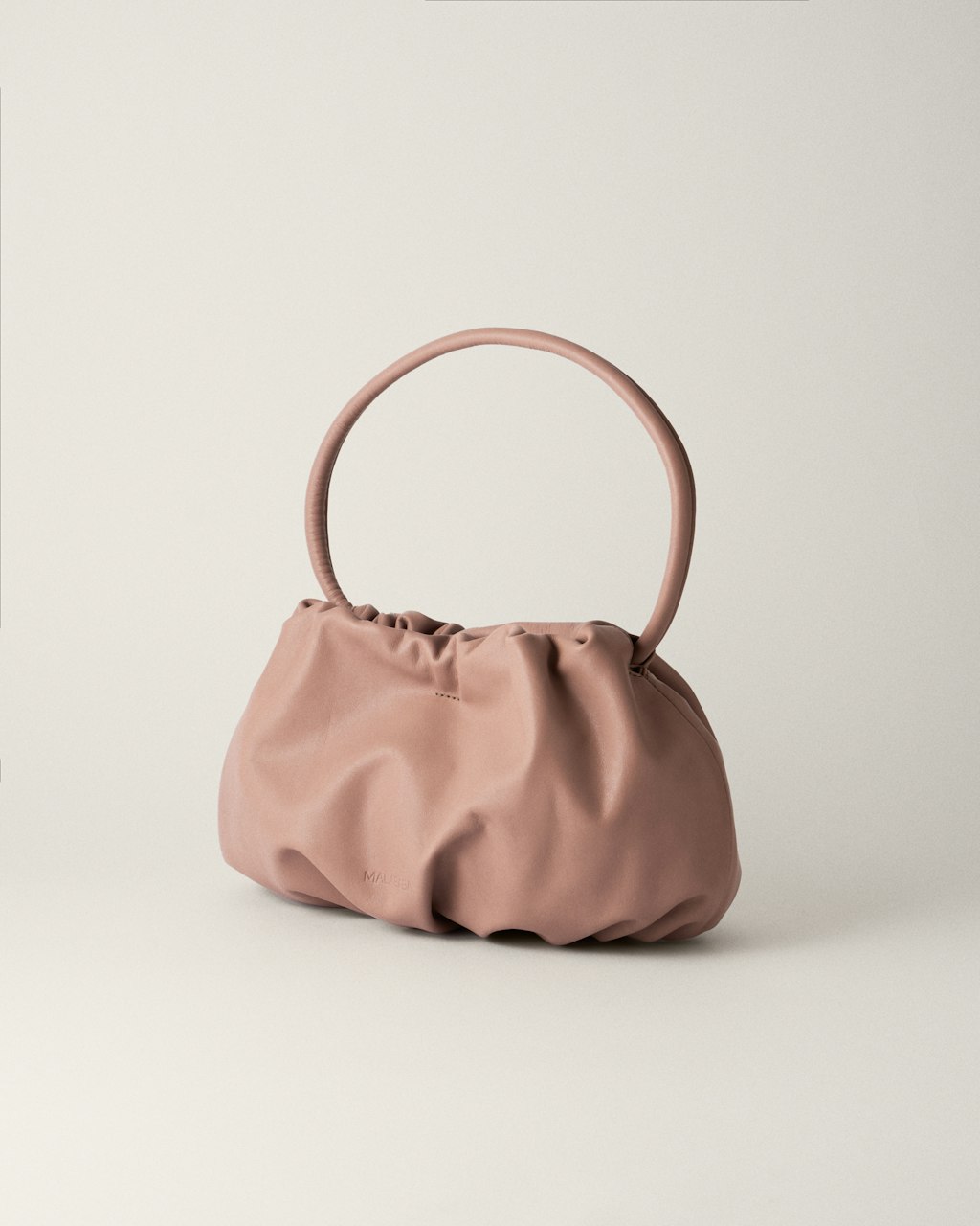 Medium size shoulder bag made of pleated cowhide leather with a cotton inner lining.