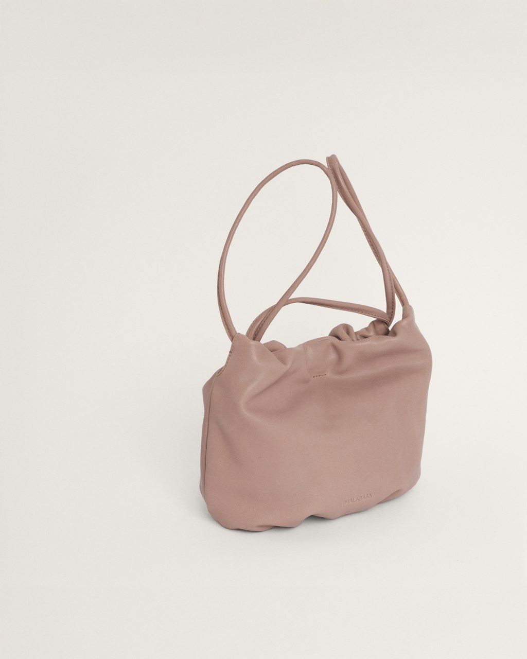 Medium shoulder bag made of pleated cowhide leather with a cotton inner lining.