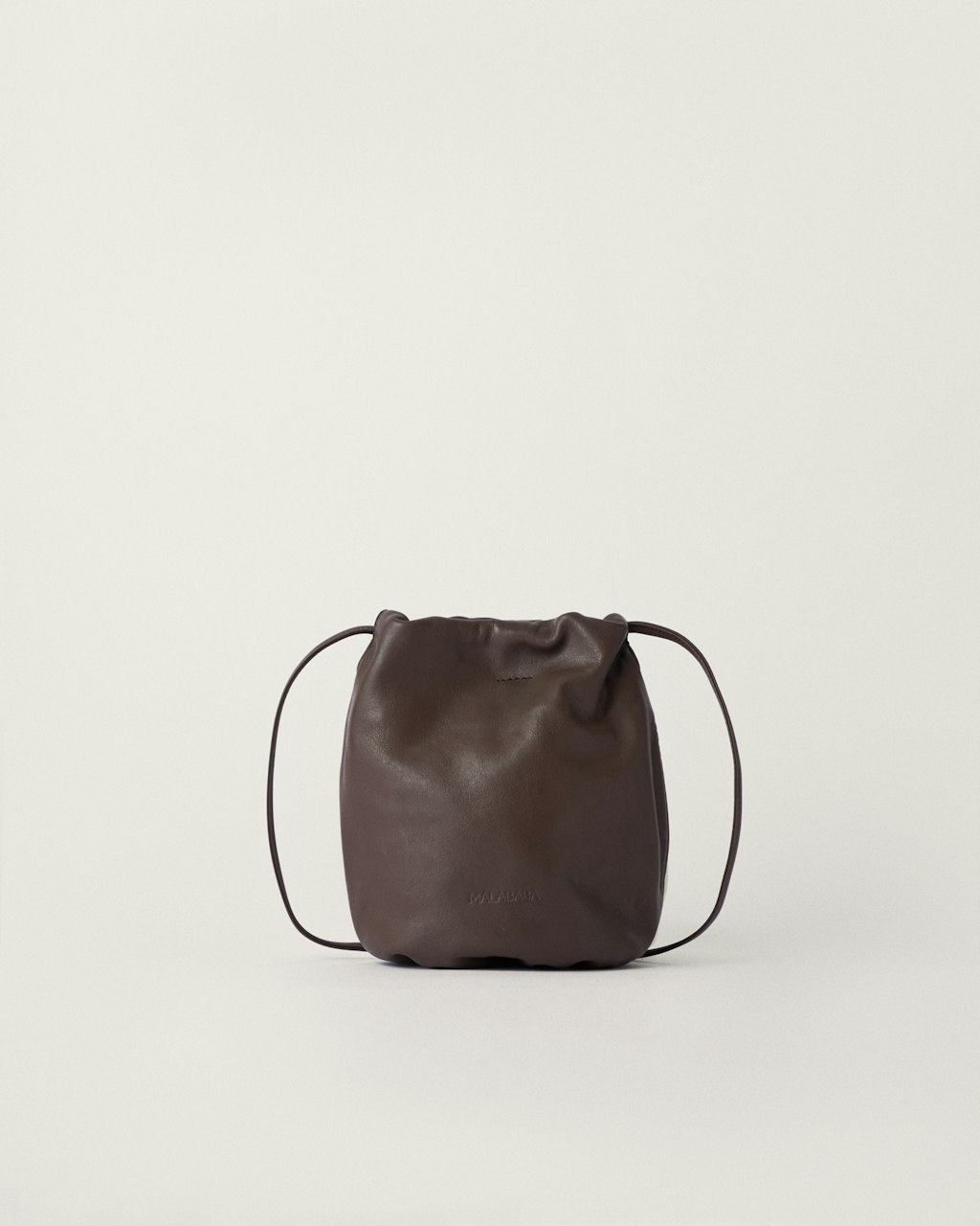 Mini-sized shoulder bag made of pleated cowhide leather with a 100% cotton inner lining.