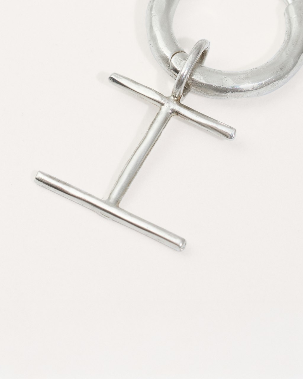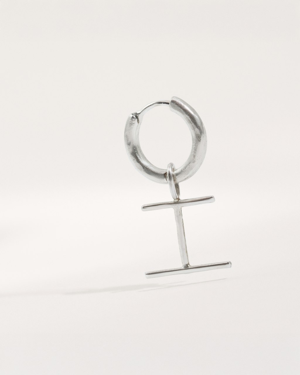 Individual small hoop earring, made in sterling silver with a pendant letter motif.