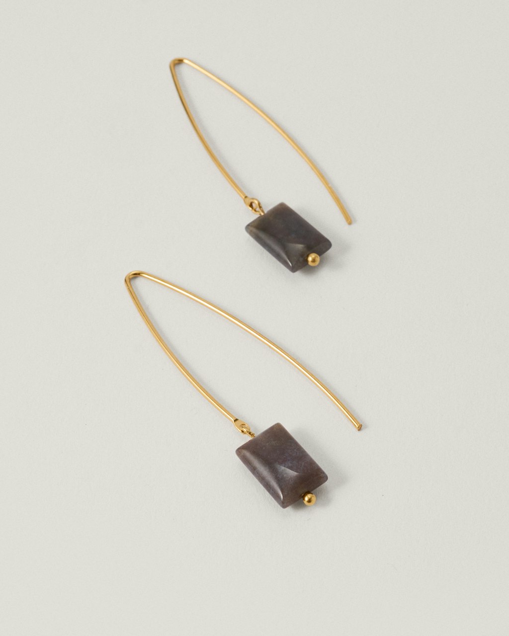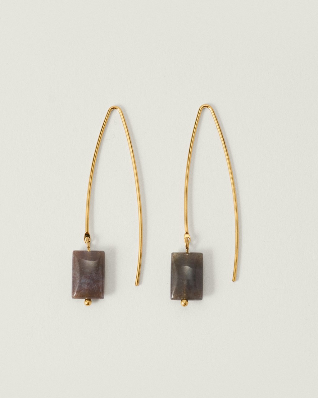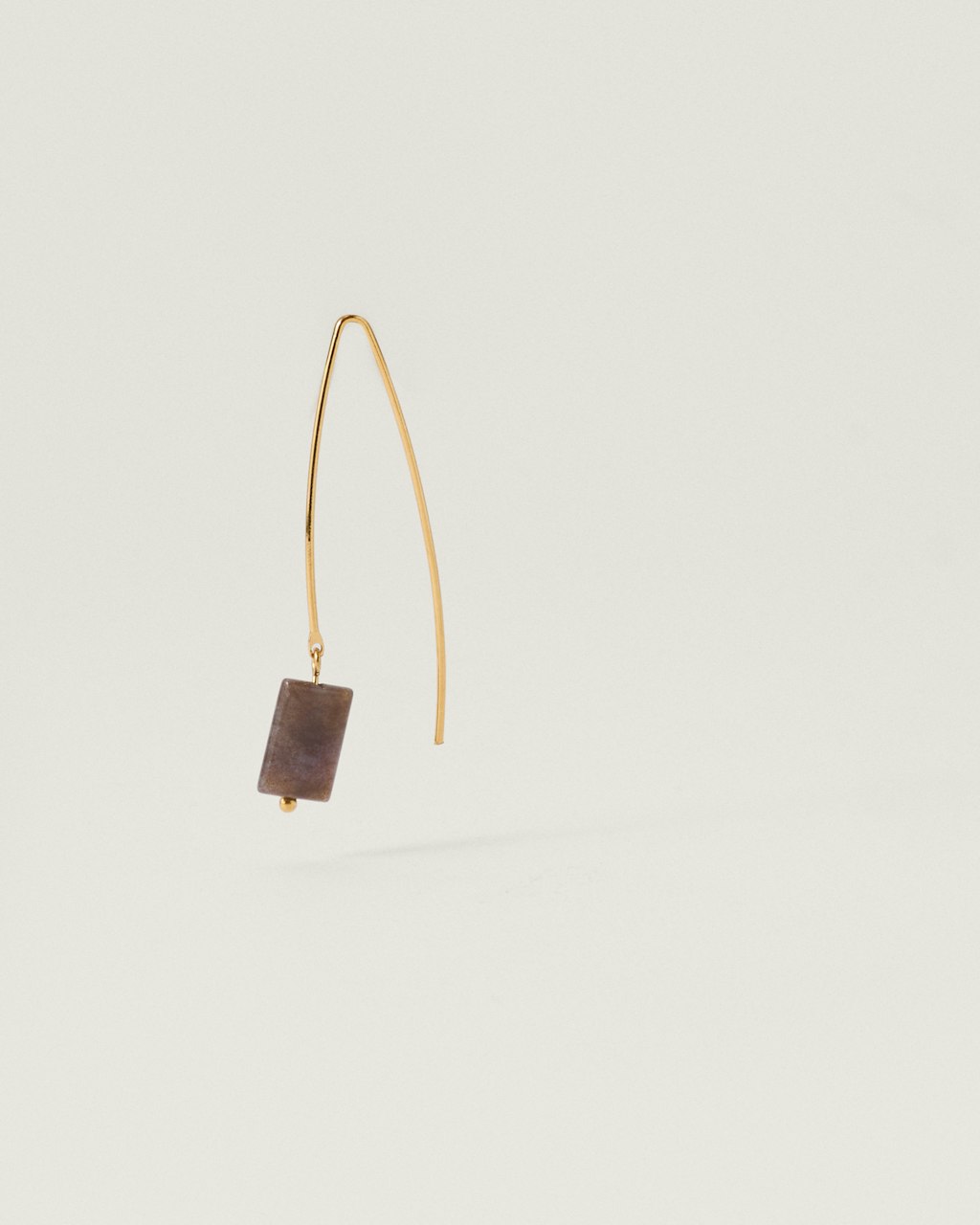 Limited edition earring with a long, slim bar. It features a rectangular shaped natural indian agate that hangs from the end of the bar, adding a subtle contrast to the clean lines of the piece. Lightweight and sophisticated, these earrings are ideal for complementing any daytime or evening look with a simple, refined gesture.