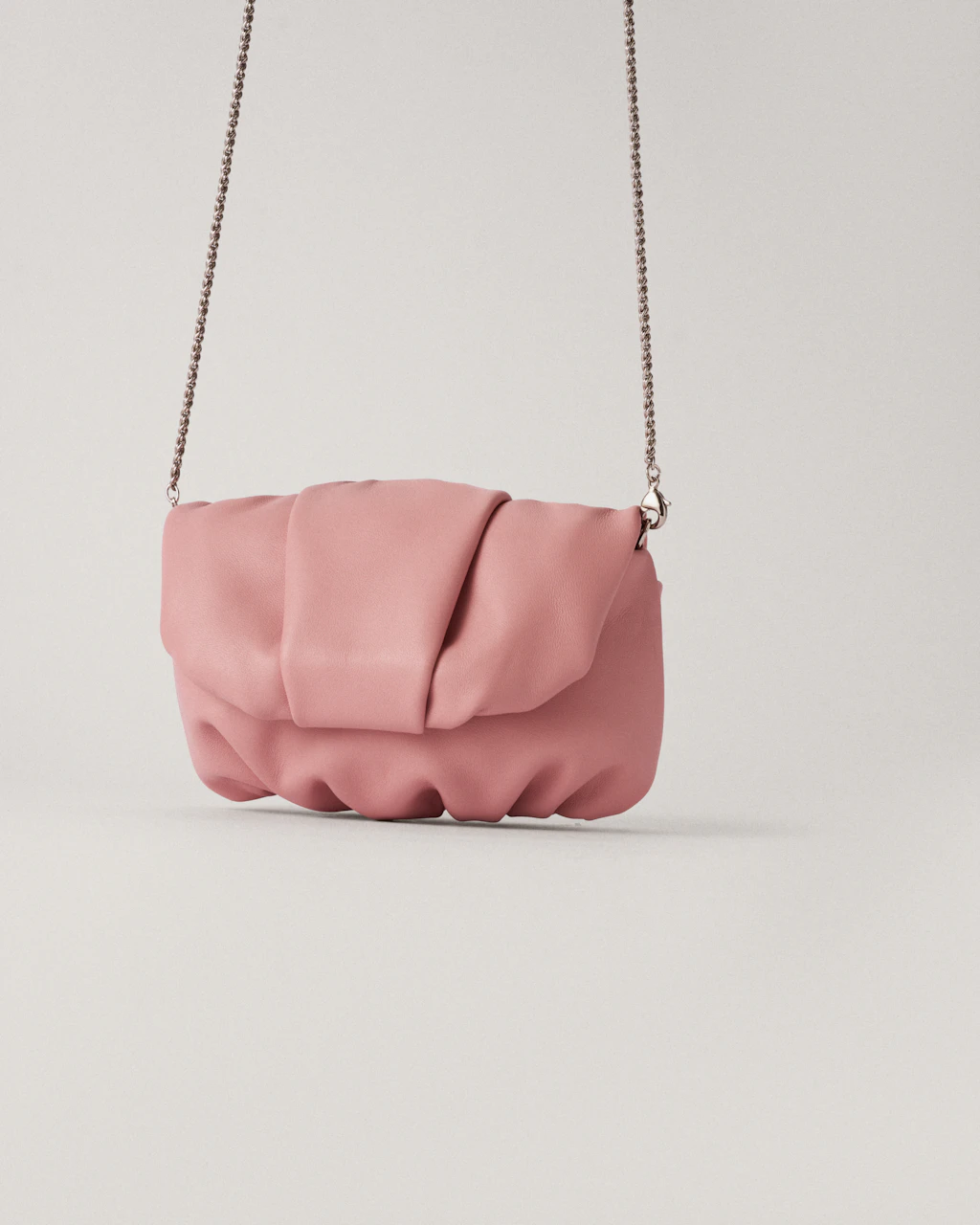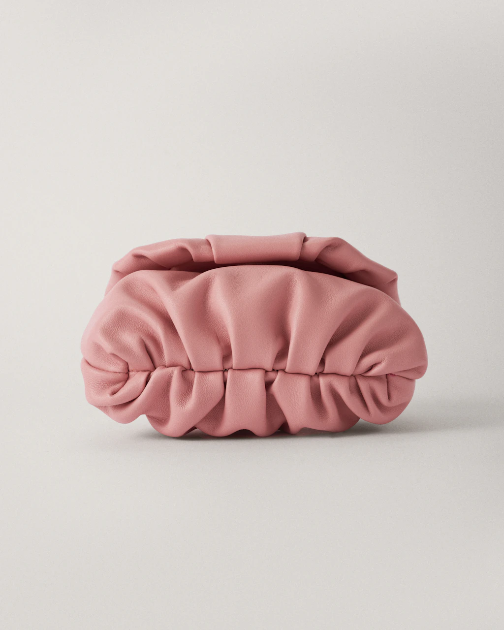 Small-sized clutch with gathered structure made in lambskin leather, extremely soft and pleasant.