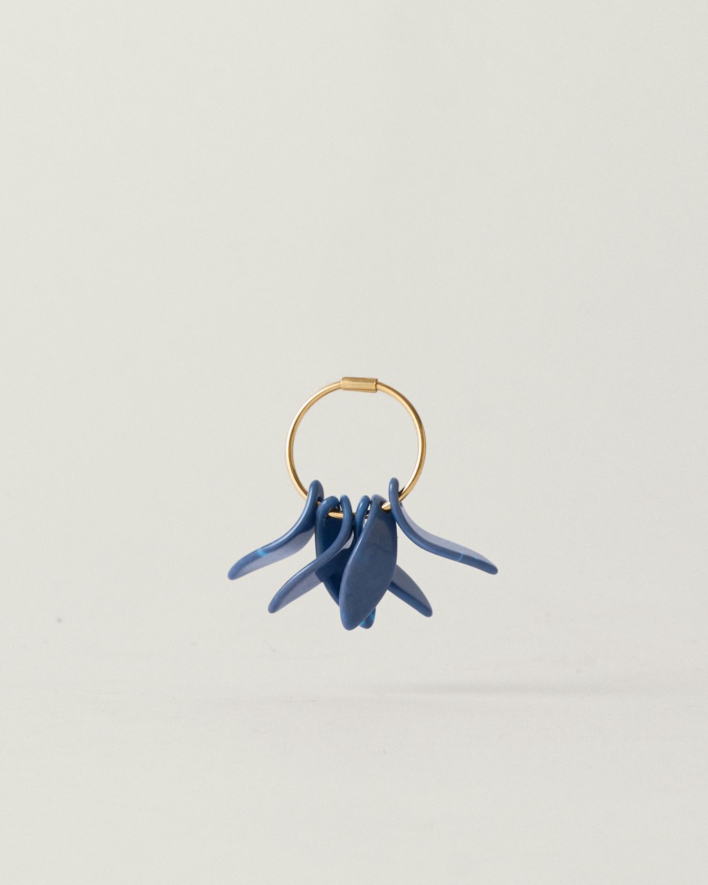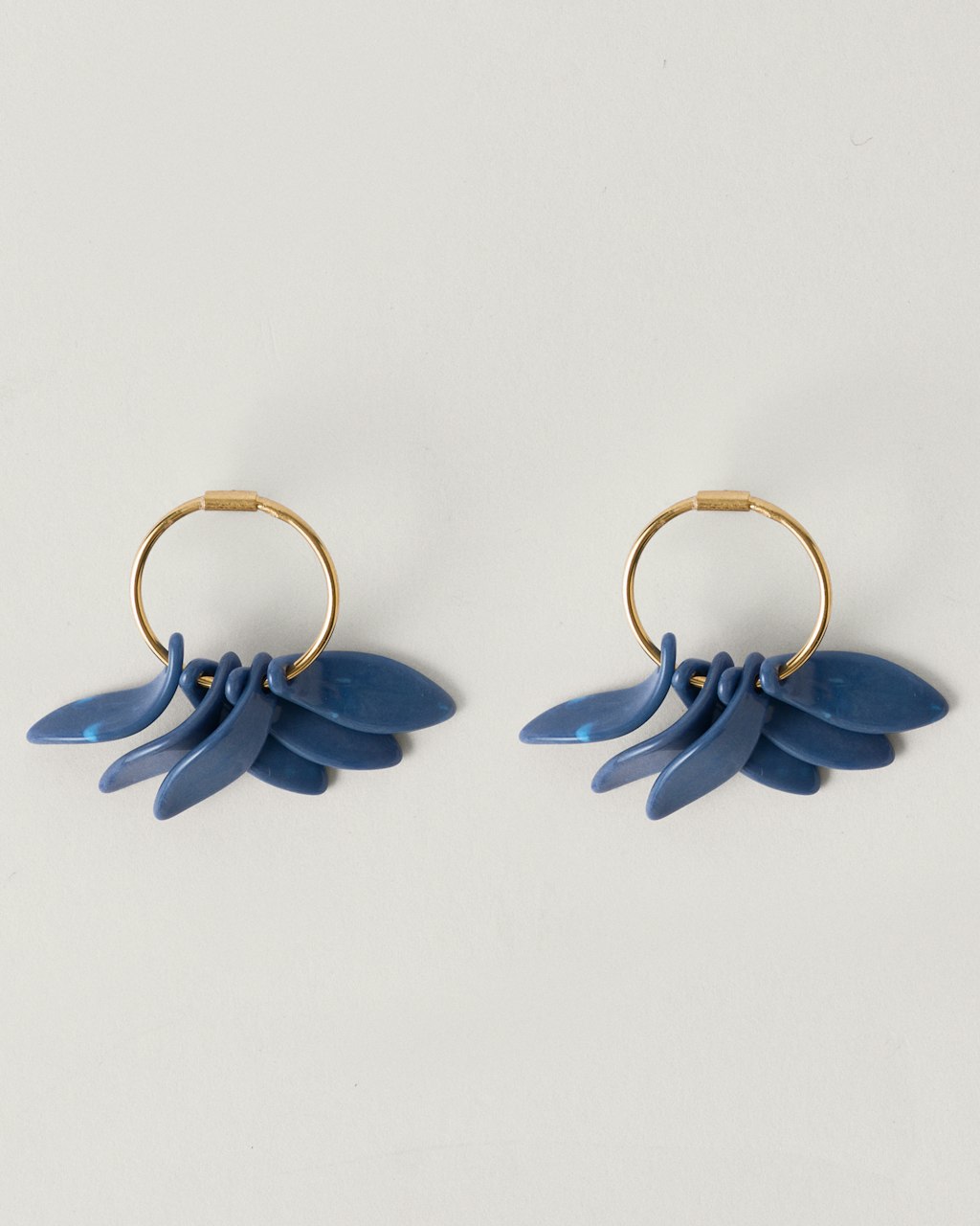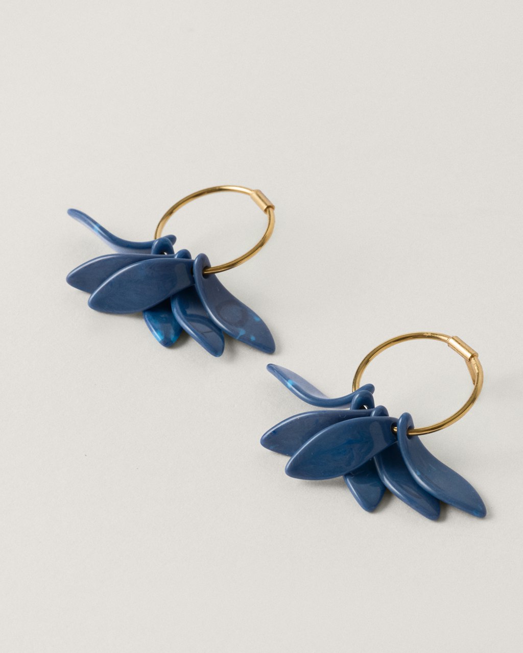 Colorful methacrylate petal motifs medium-sized earrings, pending by a medium size hoop earring made of brass, plated in 3 micron 18kt gold.