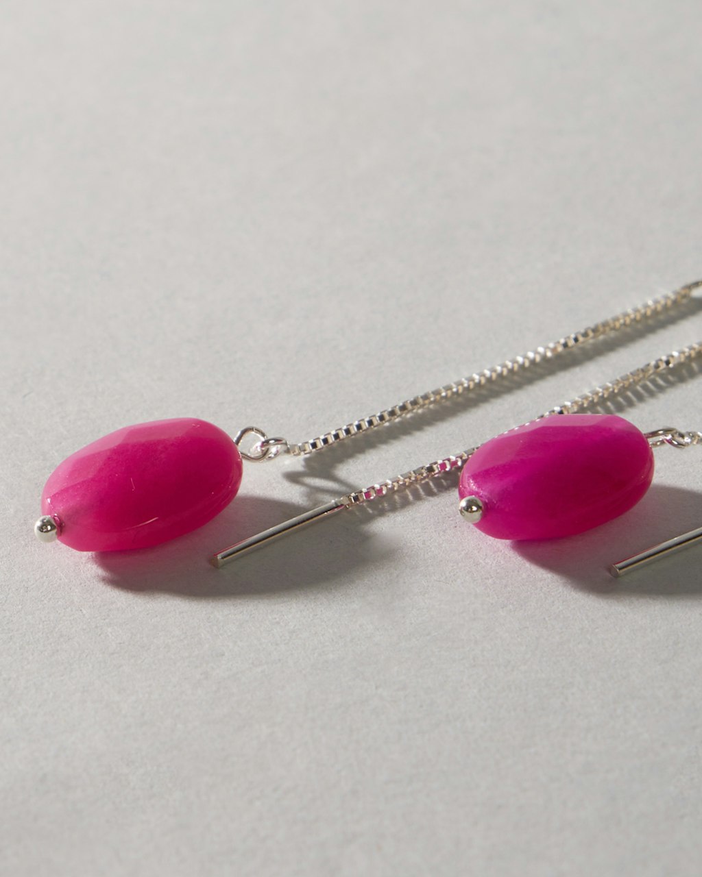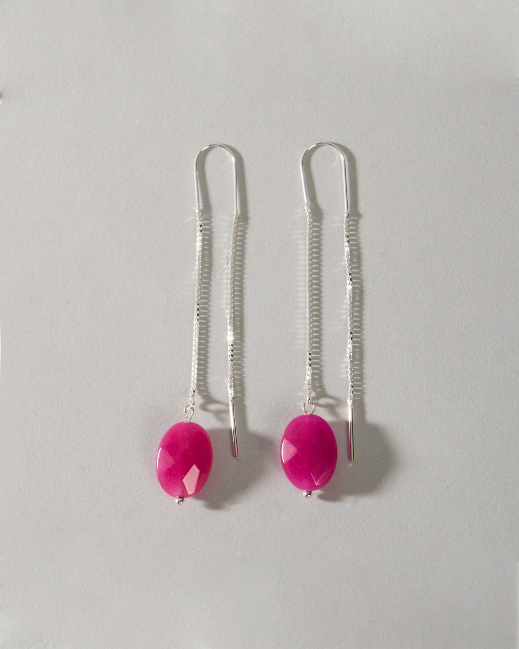 Long and elegant earrings made of sterling silver. With a detail of a natural jade stone in different colors.