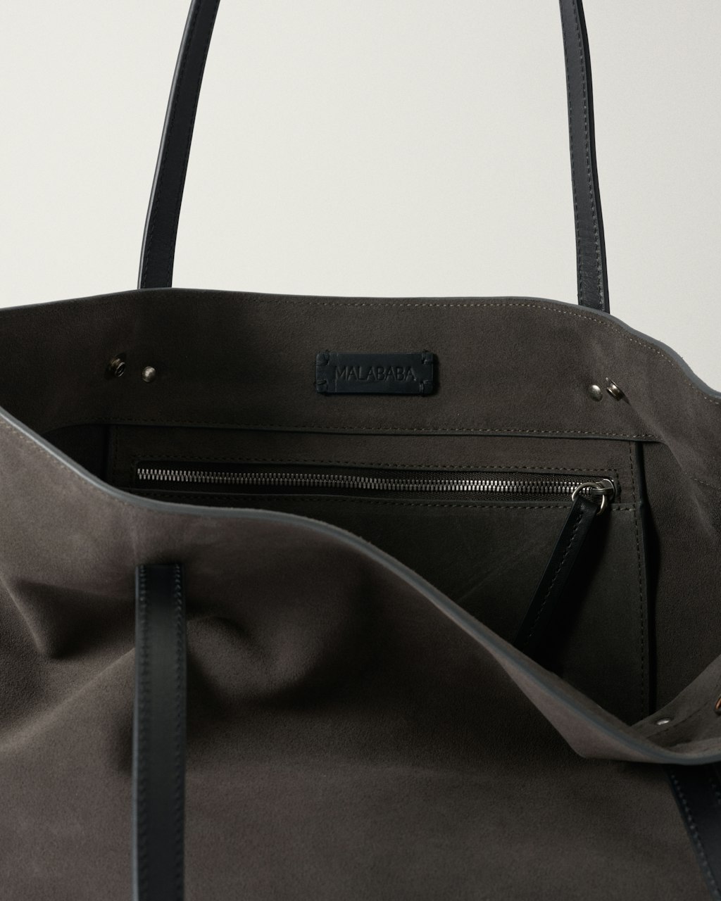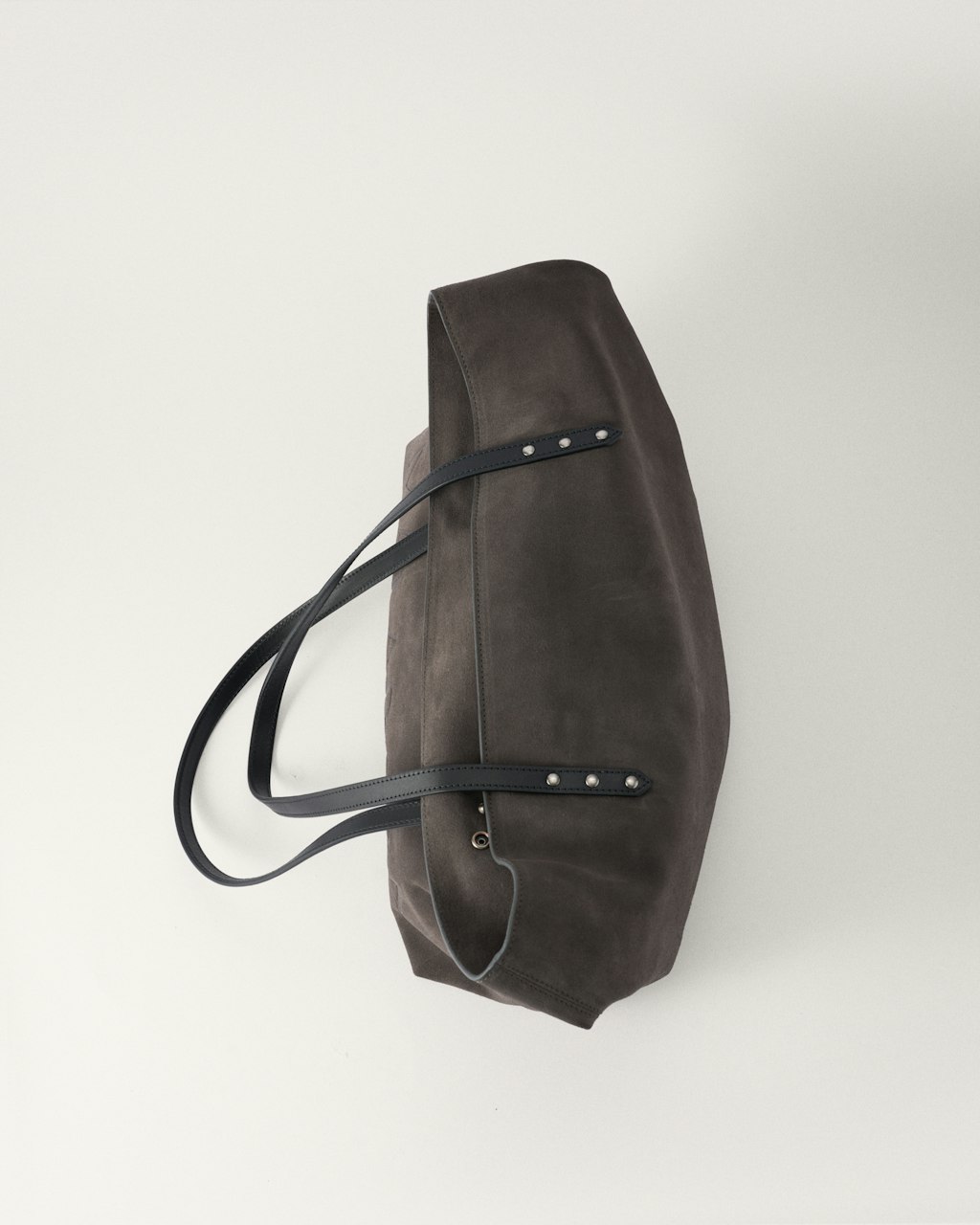 Large shopper bag crafted in two different leather styles for you to choose, including a water-repellent treated split cowhide and a nubuck leather with a distressed, slightly fuzzy finish.