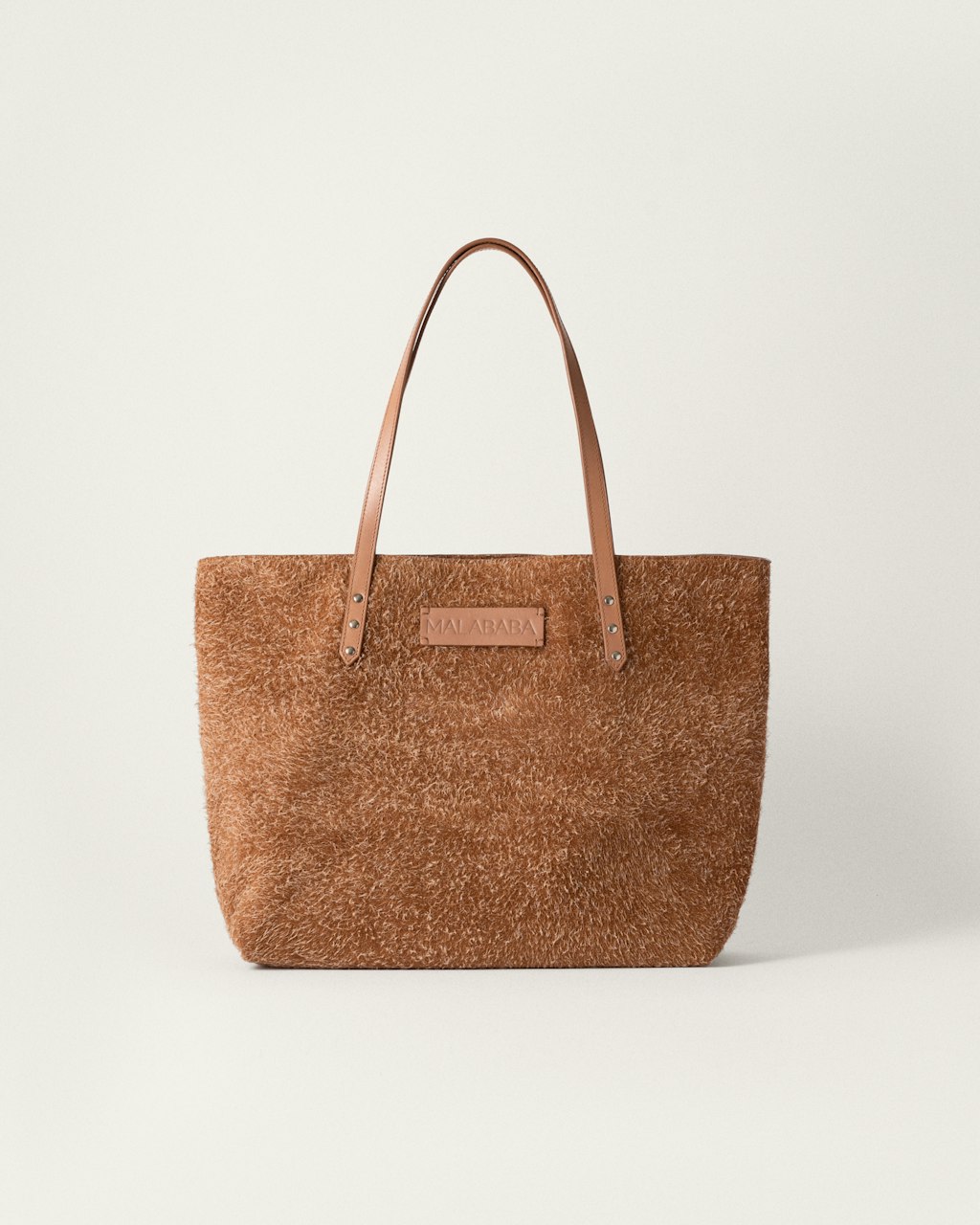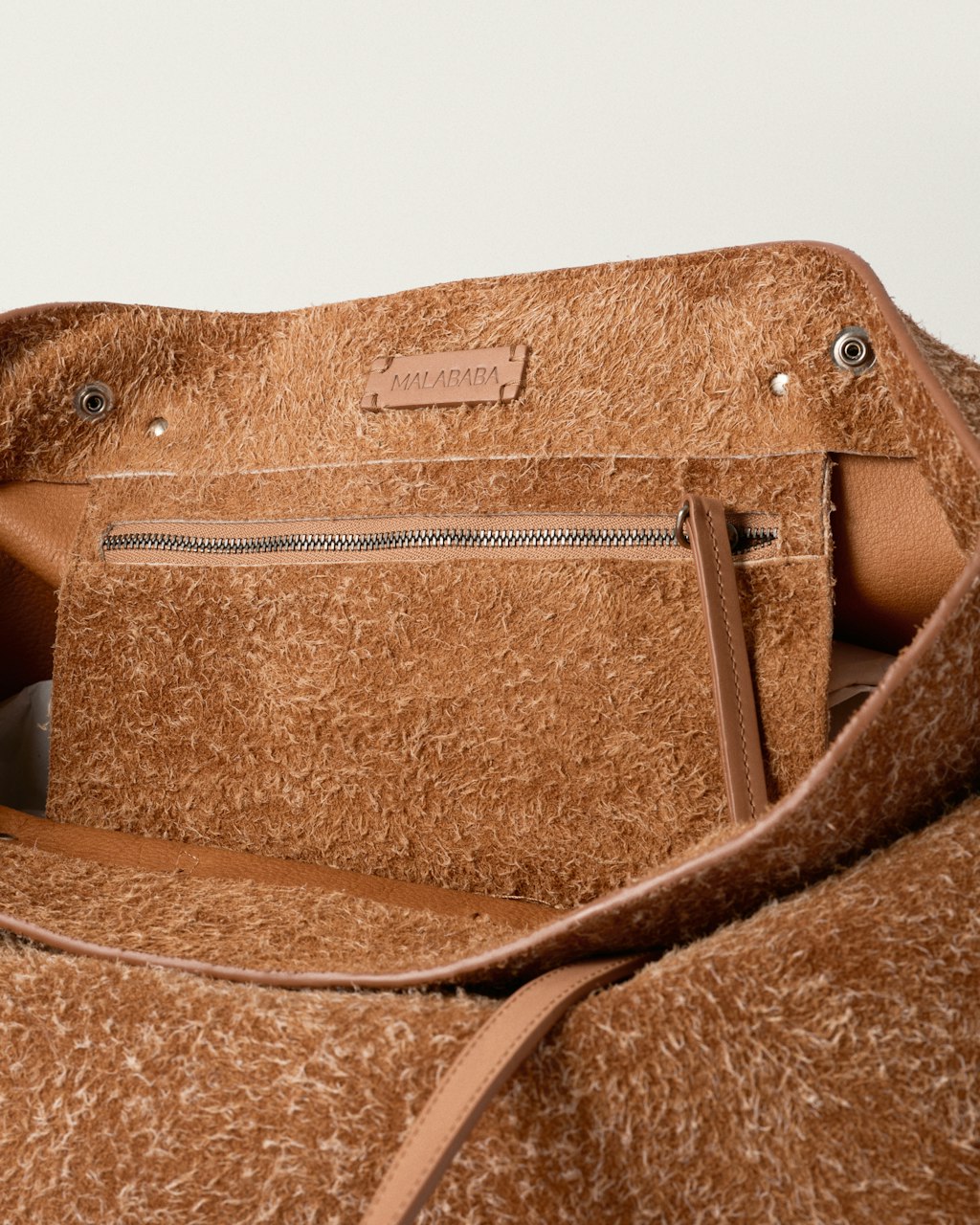 Large shopper bag crafted in two different leather styles for you to choose, including a water-repellent treated split cowhide and a nubuck leather with a distressed, slightly fuzzy finish.