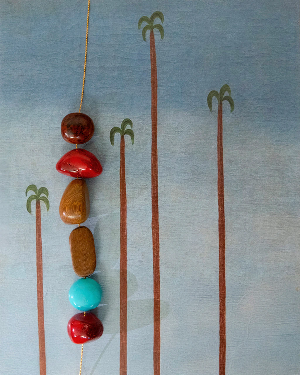 Medium-length necklace combining different natural seed pieces, coral, and turquoise, creating an organic design full of color. Its handcrafted, timeless style makes it a versatile accessory, ideal for everyday wear or to add a special, personal touch to any look. Lightweight and easy to wear, handmade in our workshop in Madrid.