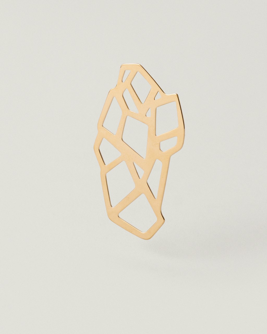 Large earring with geometric lines, designed to create visual impact while maintaining a light and balanced feel. ?This contemporary jewelry line is made using laser cutting, with defined geometric shapes and a lightweight structure. Each piece is designed to offer visual presence without weight and is finished with a gold-plated coating that provides warmth, durability, and an even shine.