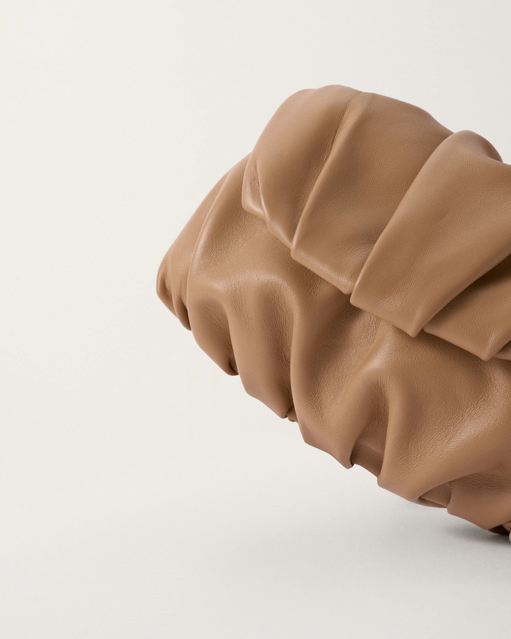 The gathered pleats are carefully handmade by our leather expert artisans.