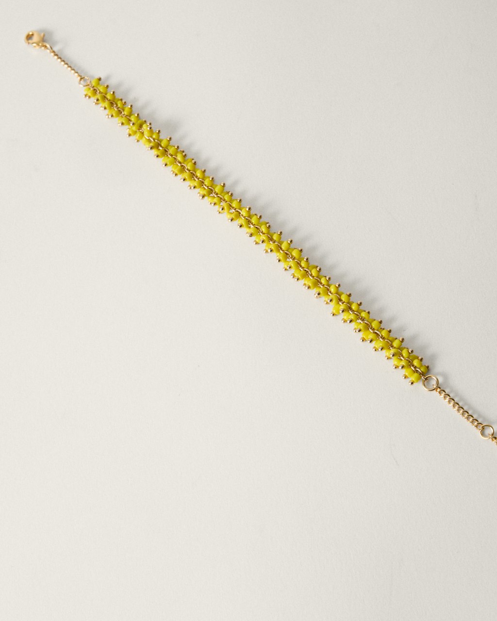 Bracelet made out of colorful ball chain, very light weight, made of brass and plated in 3 microns of 18kt gold.