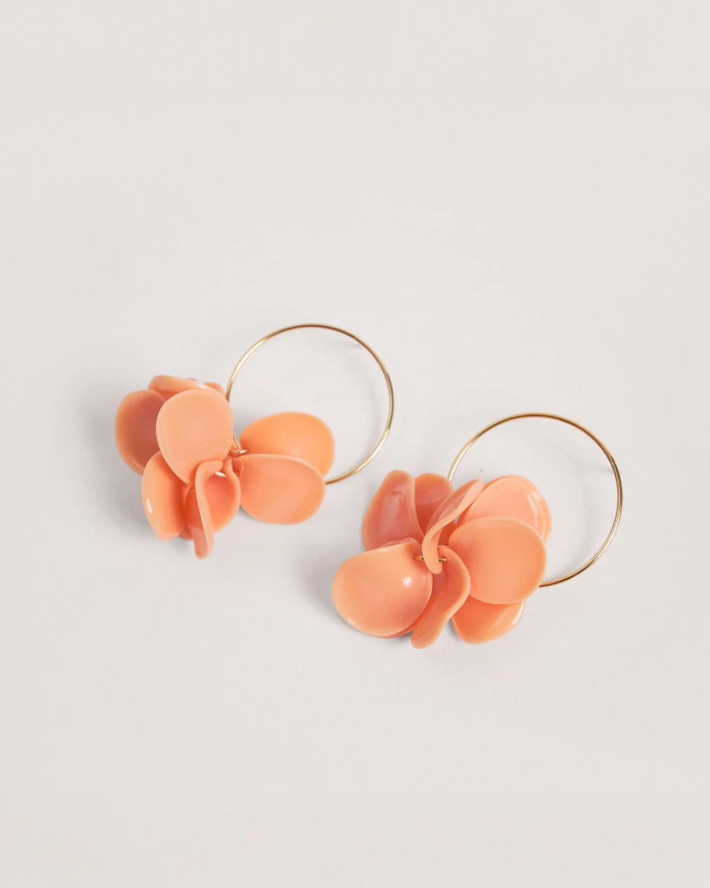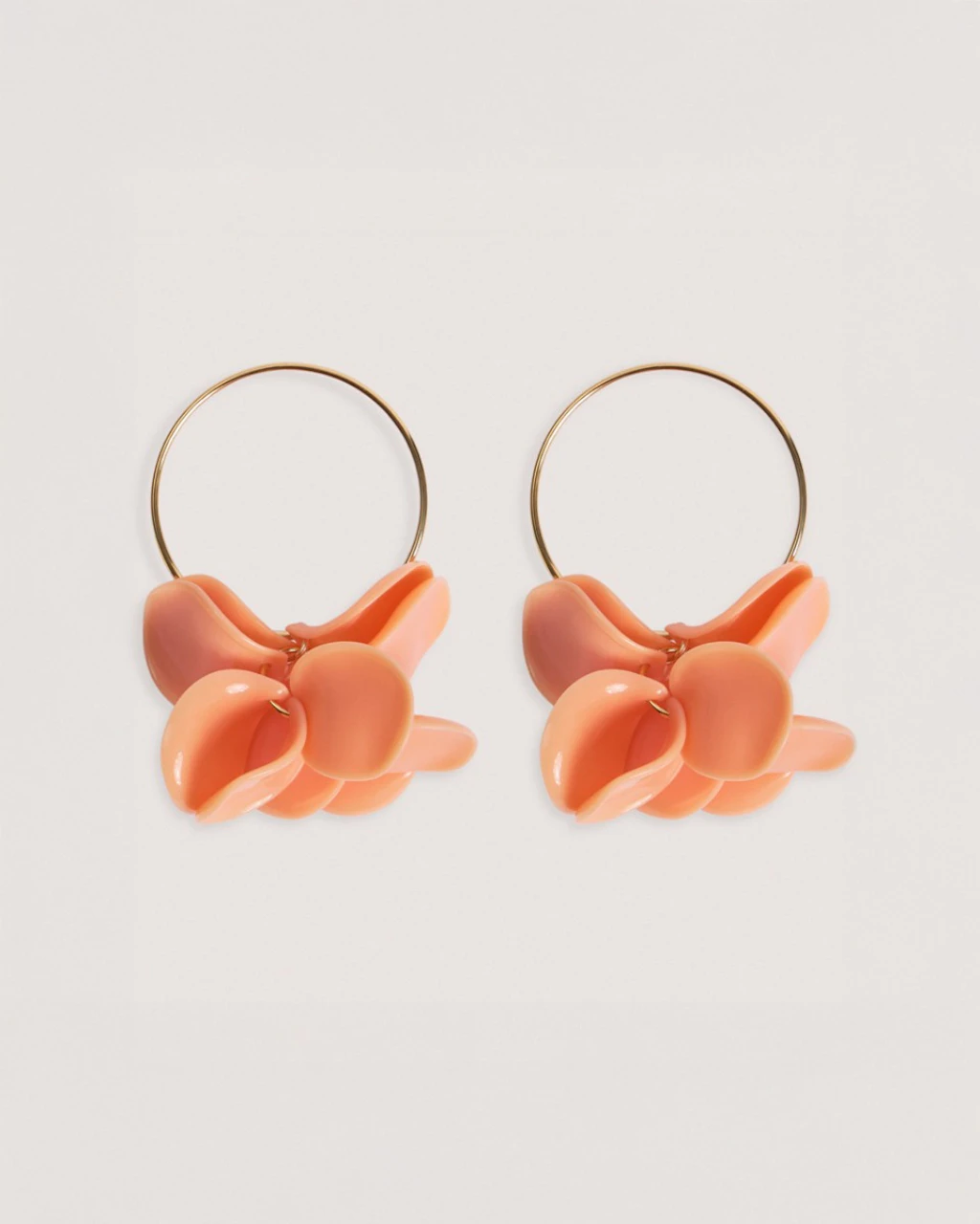 Methacrylate petal motifs very light Brass hanging on gold plated brass large hoop. Hoop with clousure.