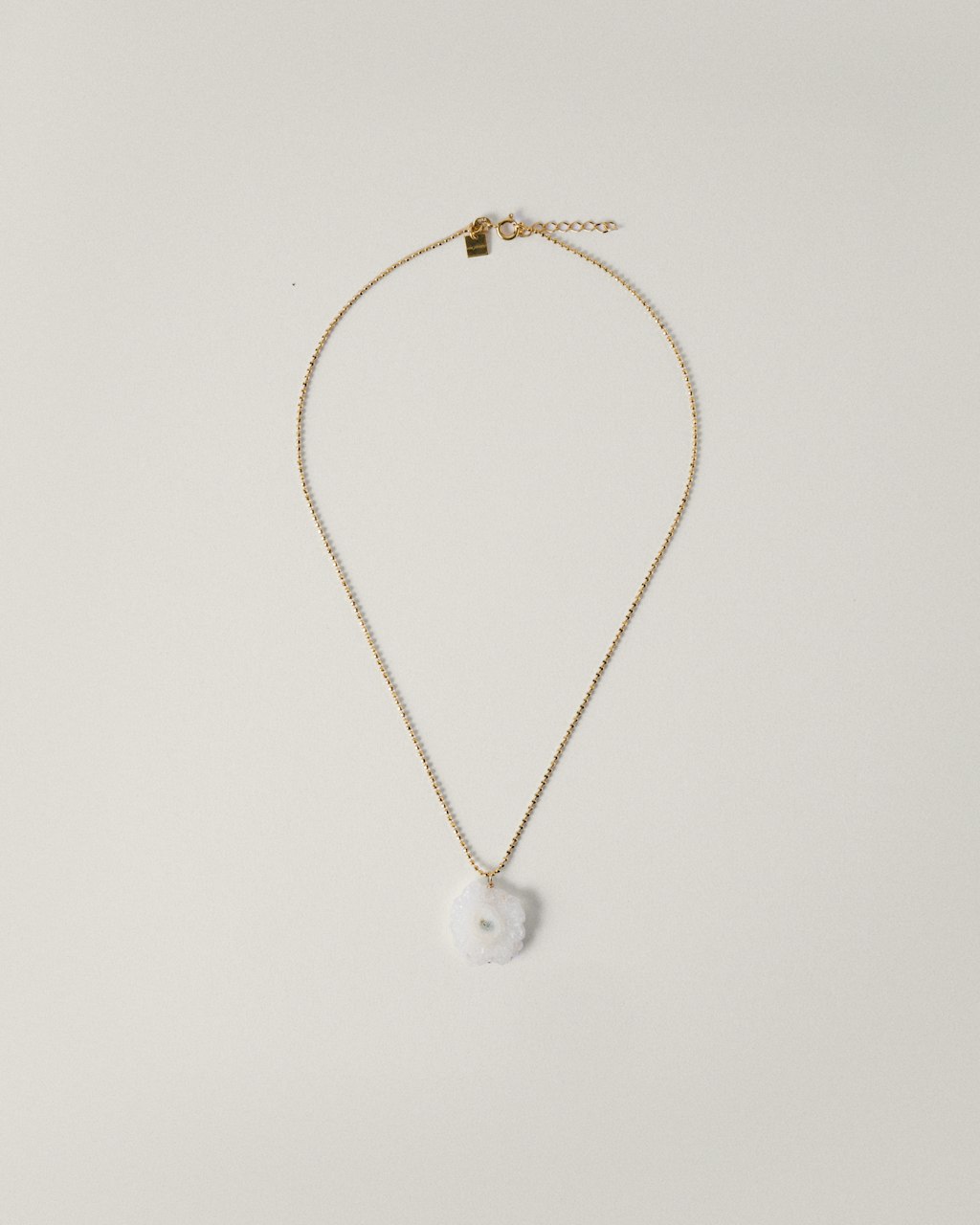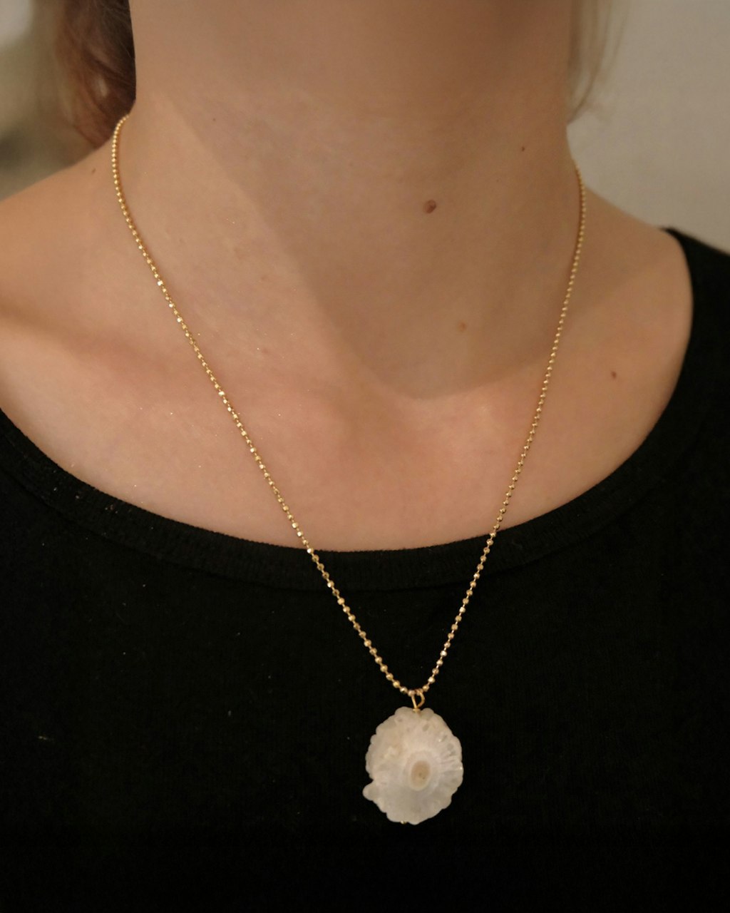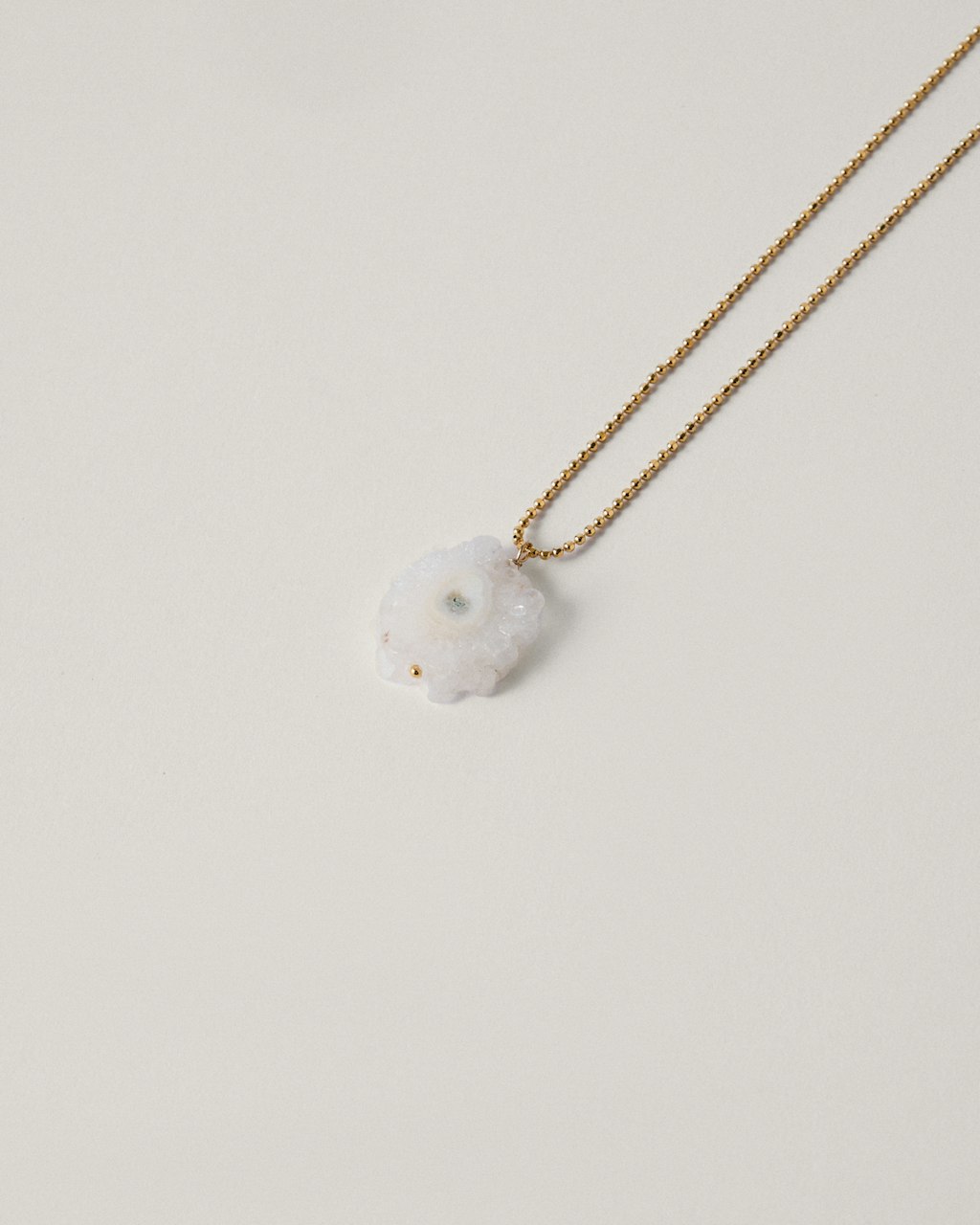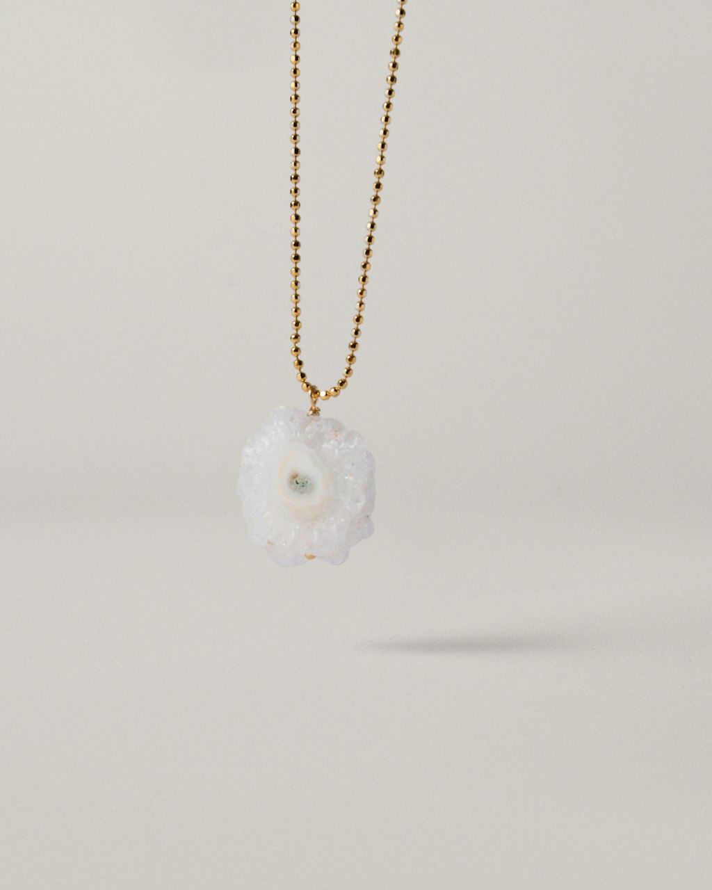 Solar quartz is a stone extracted from stalactites and often has moss inclusions in the center, hence the bluish-greenish color of the interior of the pieces. It is a stone of great balance between the energy of the Sun (strength, vitality) and the Earth (healing, stability).