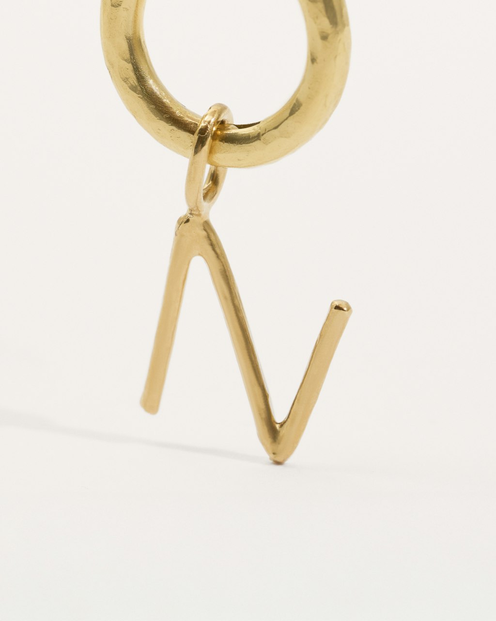 Individual 18kt gold plated small hoop earring, made in sterling silver with a pendant letter motif.