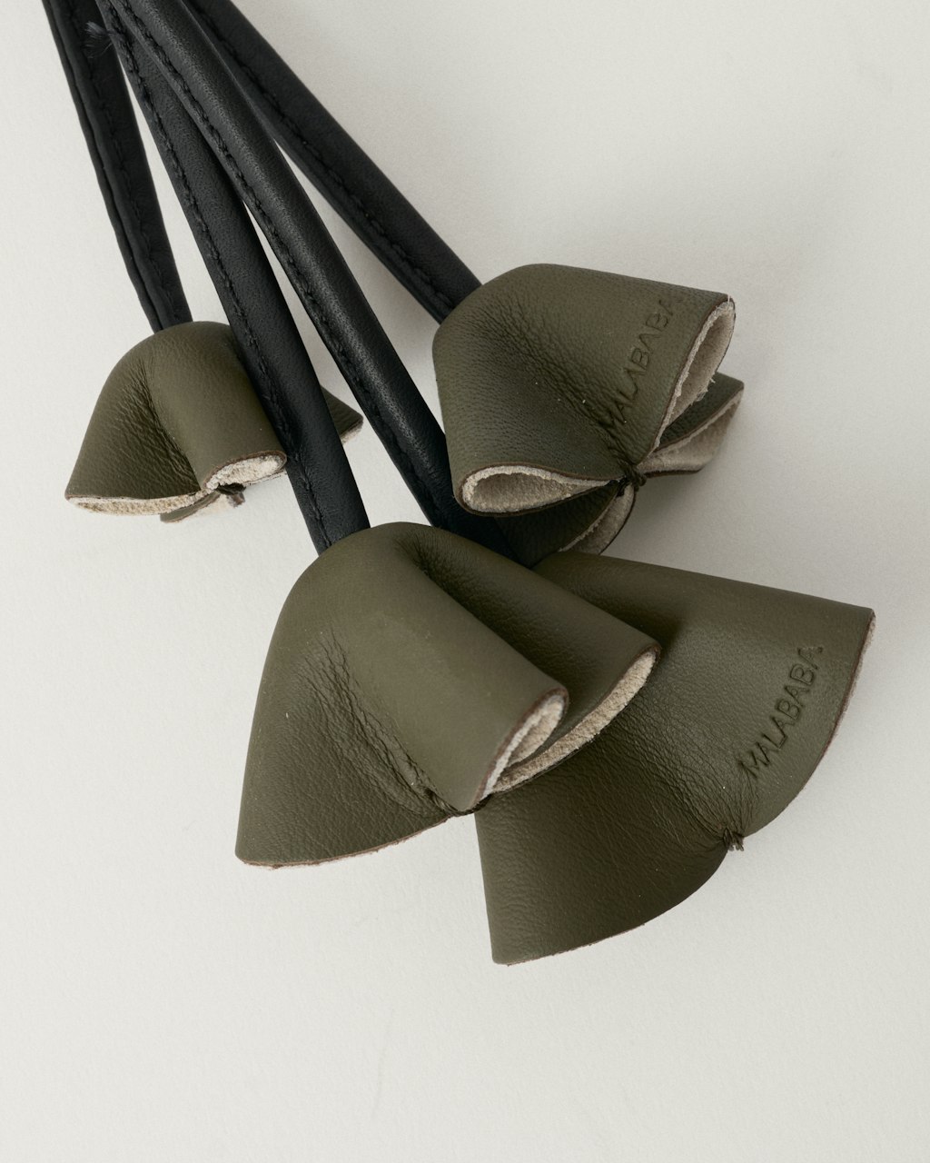 Hand-crafted flower keychain, made of different flower sizes and cowhide leather.