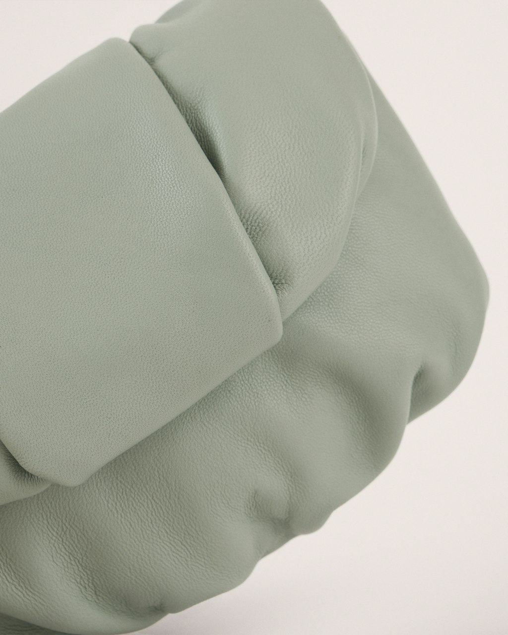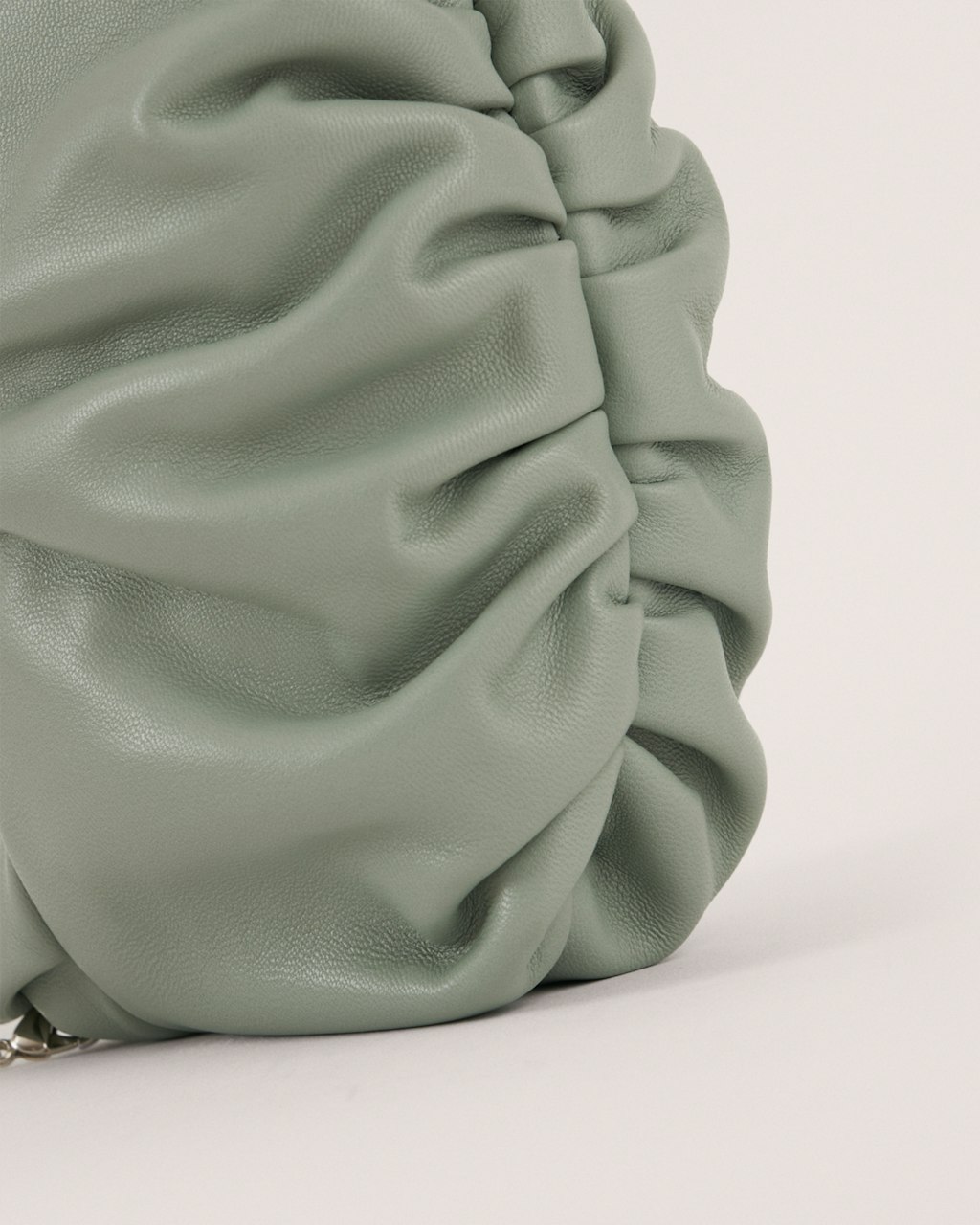 Small-sized clutch with gathered structure made in lambskin leather, extremely soft and pleasant.