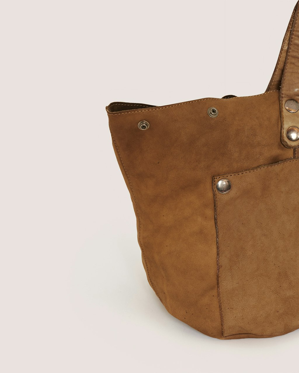 Dyed chromium free cow leather shopping bag. The process of dyeing was manual so presents imperfections as: uneven color, alteration of tone and spots for the fitting. Front open pocket. Handle of hand and shoulder.Pressure clousure. Very light.