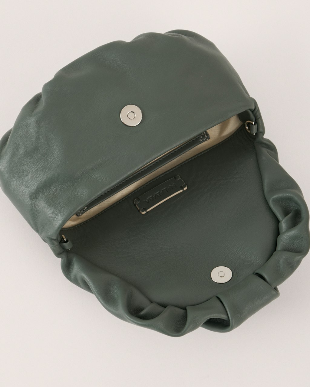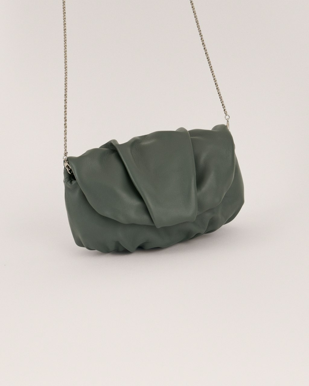 Medium-sized clutch with gathered structure made in lambskin leather, extremely soft and pleasant.