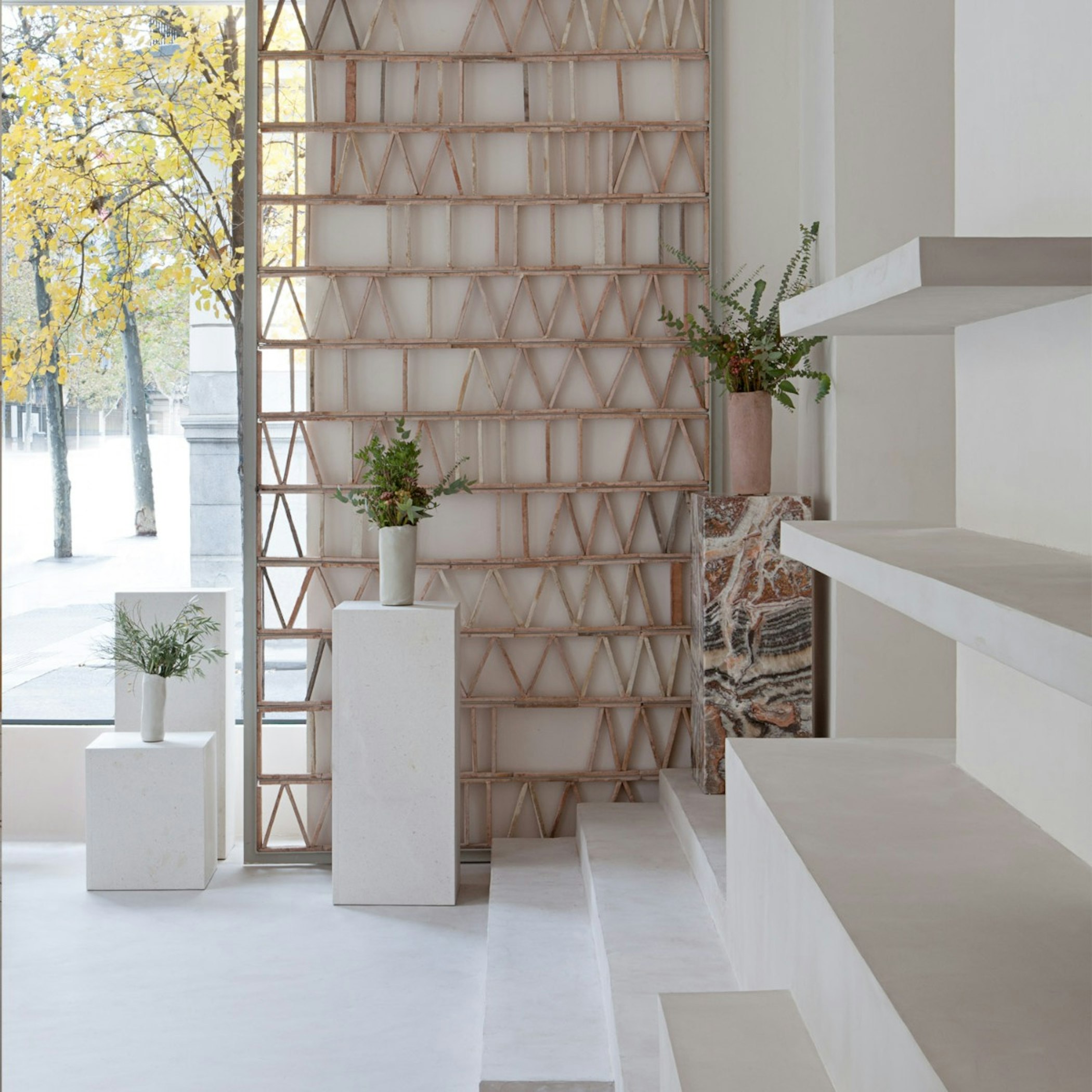 Ecocement, the render that covers some of the store interiors, is sustainable. It is guaranteed by international certifications such as German Emicode, which certifies low emision of volatile compounds -VOC- in building materials.