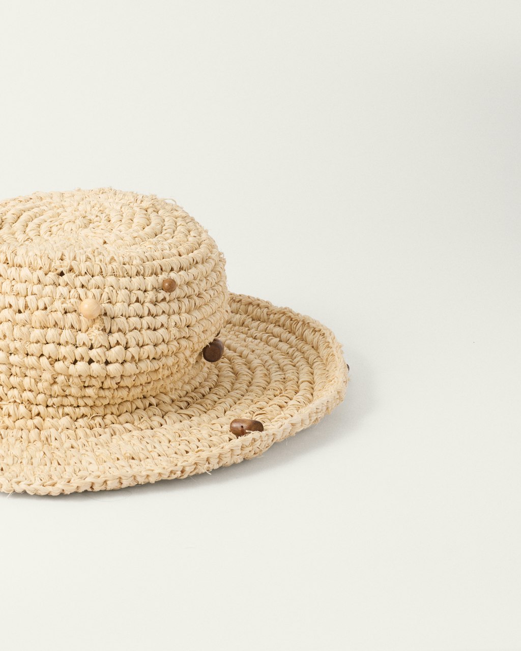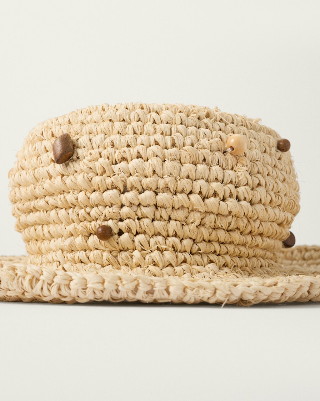 Summer hat made from natural fibers and decorated with wooden irregular pieces hand-sewn in our Madrid workshop. Each piece is unique, the result of artisanal craftsmanship and careful attention to detail, reflecting MALABABA